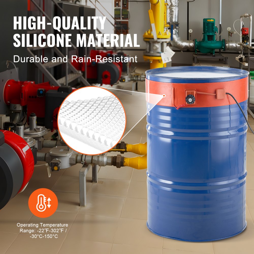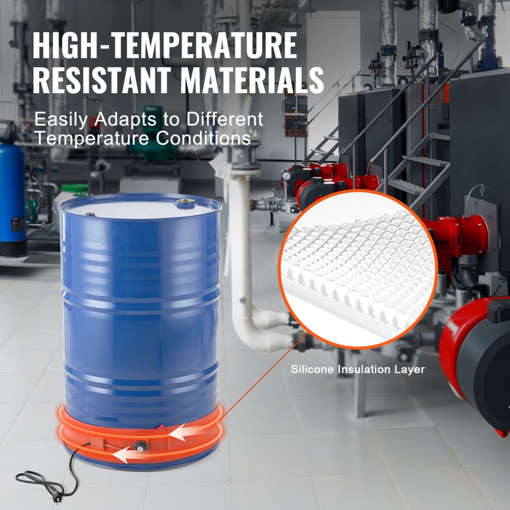 Metalowy podgrzewacz beczek, 1200 W, szerokość 5 cali, taśma grzewcza do beczek o pojemności 55 galonów, regulowany termostat w zakresie 86–302°F, wysokowydajny silikonowy podgrzewacz beczek na smar, certyfikat CE, kolor pomarańczowy - Klimatyzacja | Galaxy Sklep