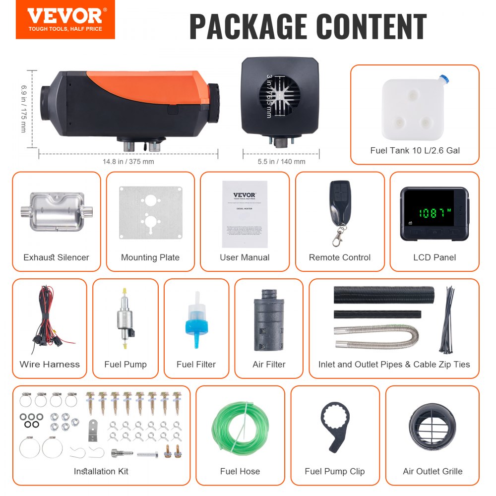 Nagrzewnica powietrza na olej napędowy VEVOR 12 i 24 V 8 kW, nagrzewnica powietrza, nagrzewnica powietrza na olej napędowy, nagrzewnica powietrza, 0,16-0,62 l/h, nagrzewnica powietrza na olej napędowy z wyświetlaczem LCD i pilotem zdalnego sterowania - Klimatyzacja | Galaxy Sklep