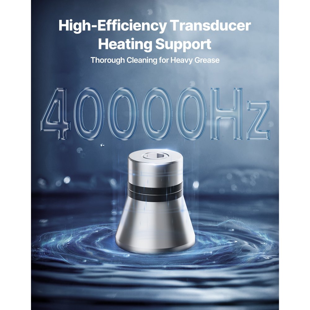Skuteczne czyszczenie: Fale ultradźwiękowe o częstotliwości 40 kHz generują mikropęcherzyki, które szybko i skutecznie usuwają olej i cząsteczki z trudno dostępnych miejsc, takich jak gaźniki, dysze spryskiwaczy i drobne części. Aby uzyskać optymalne rezultaty, należy użyć neutralnego detergentu i ciepłej wody.