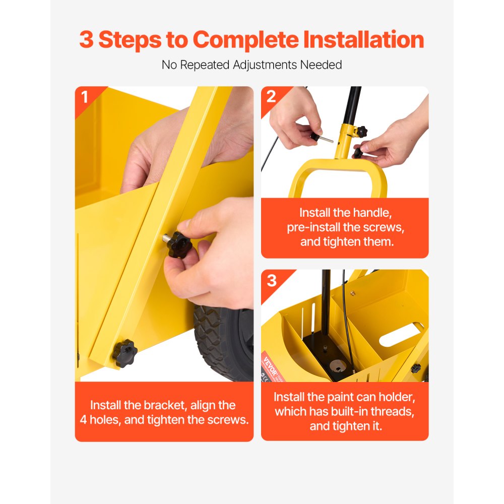 610 x 330 x 900 mm 4-kołowa maszyna do znakowania o dużej wytrzymałości z regulowaną szerokością 56-102 mm, tworzy wyraźne linie krawędzi dróg, parkingów, boisk sportowych, żółta - Malarstwo | Galaxy Sklep