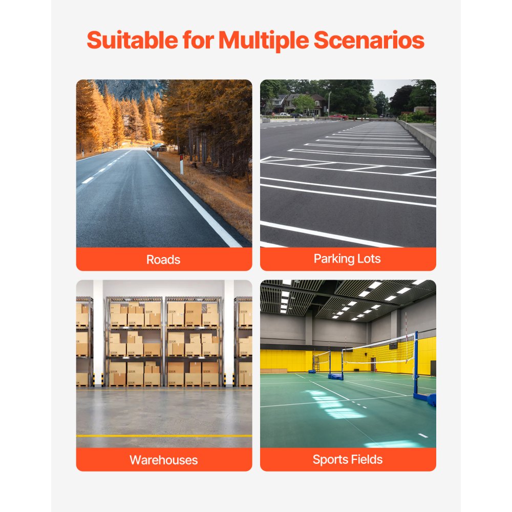 Wszechstronność: Ta solidna maszyna do znakowania nawierzchni nadaje się do parkingów, magazynów, boisk sportowych i wielu innych miejsc. Idealnie nadaje się do asfaltu, betonu, trawy itp. Składana konstrukcja ułatwia transport i przechowywanie.