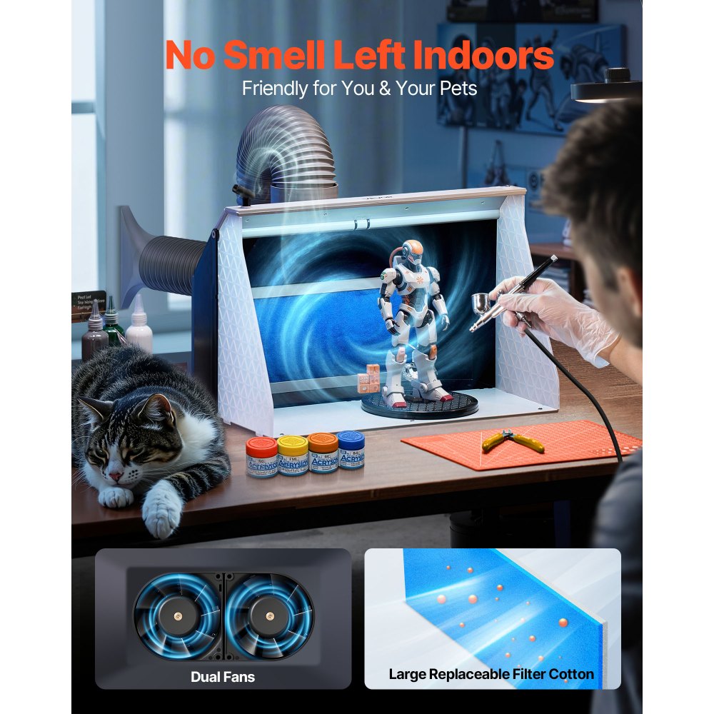 Kabina lakiernicza VEVOR z dwoma wentylatorami (545 x 475 x 370 mm), przenośna kabina lakiernicza z 3 diodami LED i wężem przedłużającym, do malowania modeli, dzieł sztuki - Malarstwo | Galaxy Sklep