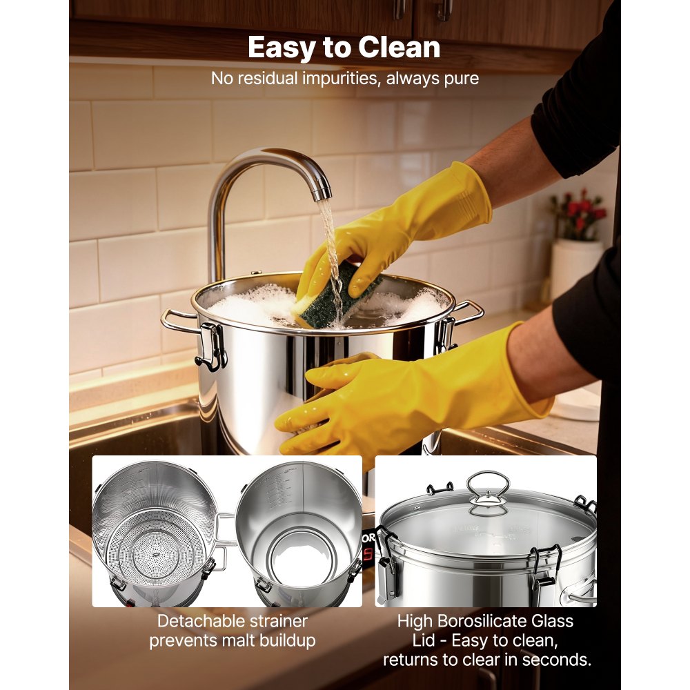 Łatwy w użyciu: Nasz system do domowego warzenia piwa wyposażony jest w elektroniczny panel sterowania umożliwiający płynną regulację temperatury i mocy. W połączeniu z precyzyjnymi czujnikami, precyzyjnie reguluje temperaturę zacieru, wydobywając więcej cukru i bogaty aromat słodu.