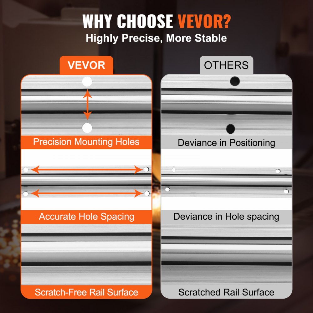 Trwałość i długa żywotność: Szyna liniowa wykonana jest ze stali węglowej i aluminium z chromowanym wykończeniem, co zapewnia odporność na rdzę i wysoką trwałość. Wbudowane cztery aluminiowe bloki ślizgowe i łożyska kulkowe zapewniają płynny i niezakłócony przesuw.