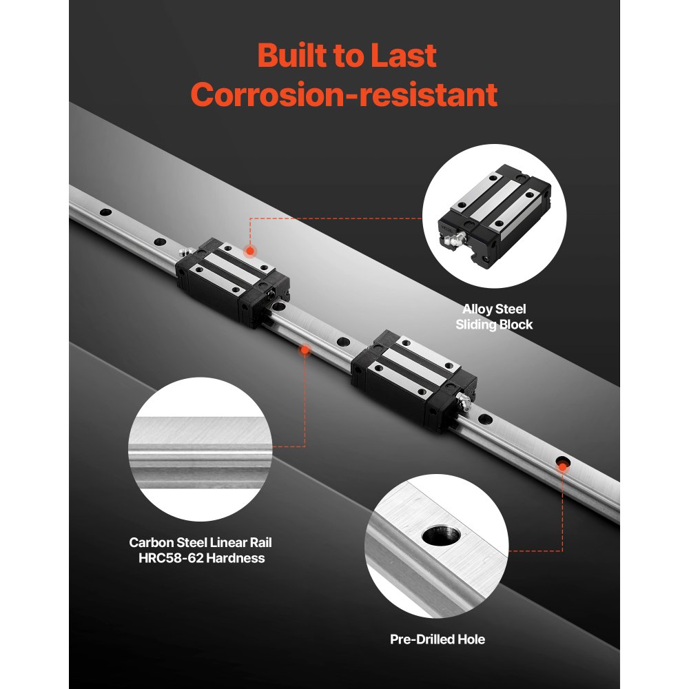 Prowadnice liniowe VEVOR, HGR20, zestaw 2 szt., 2000 mm, prowadnice liniowe i 4 bloki ślizgowe, stal nierdzewna, zestaw o wysokiej precyzji, do majsterkowiczów, frezarek CNC, tokarek, frezarek, drukarek 3D - Narzędzia elektryczne | Galaxy Sklep
