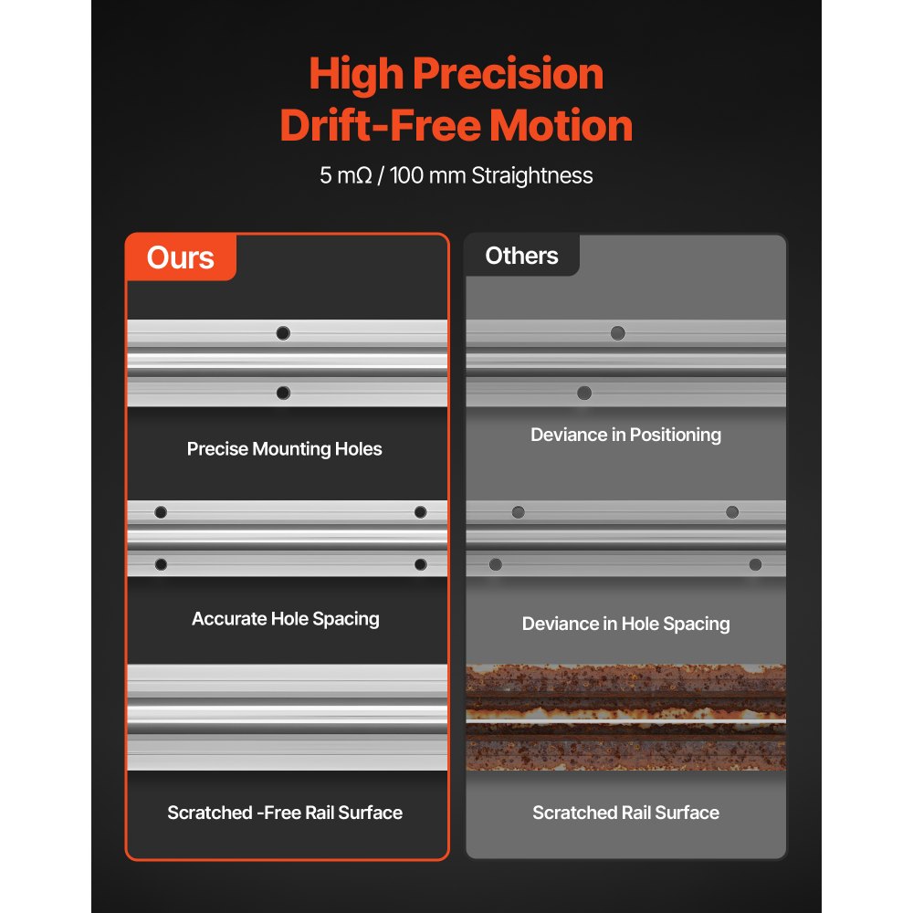 Prowadnice liniowe VEVOR SBR25, zestaw 2 szyn liniowych o długości 1200 mm i 4 bloki ślizgowe, wał w pełni podparty, szyna prowadząca do maszyn do cięcia, szlifowania, frezowania, wiercenia itp. - Narzędzia elektryczne | Galaxy Sklep