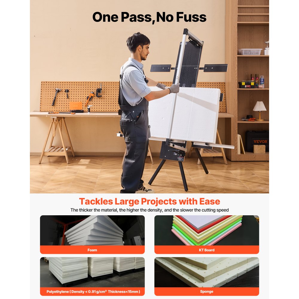 Szybkie nagrzewanie: Przecinarka do styropianu VEVOR o mocy 200 W nagrzewa się szybko i osiąga temperaturę roboczą w ciągu kilku sekund. Obsługuje maksymalną długość cięcia 1150 mm, maksymalną grubość cięcia 410 mm i zakres cięcia ukośnego 0-75°, spełniając szeroki zakres potrzeb cięcia.