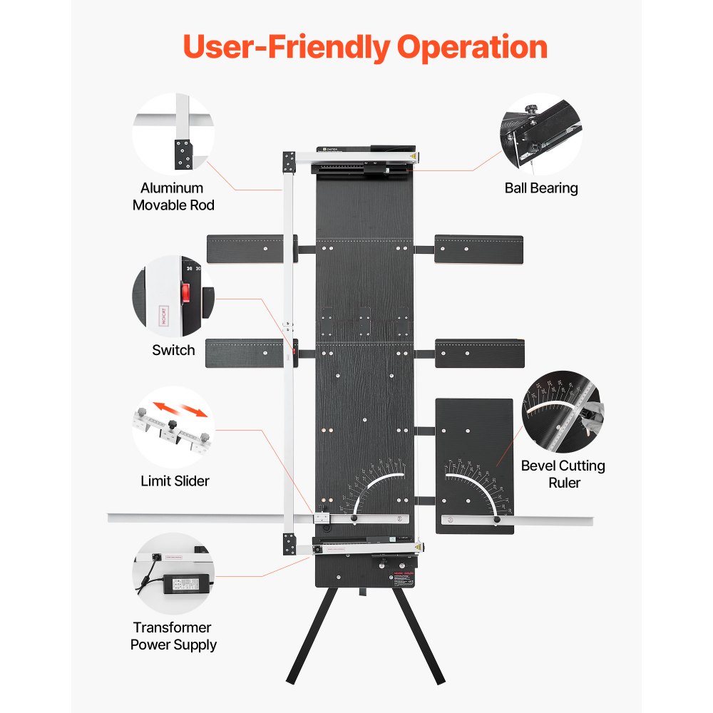 Wyrafinowana konstrukcja: Grawerowane laserowo skale są wyraźne, łatwe do odczytania i odporne na zużycie. Wyposażona w ruchomy aluminiowy pręt, linijkę do cięcia ukośnego, elastyczny suwak ograniczający i łożysko kulkowe, przecinarka do pianki z gorącym drutem umożliwia łatwe, płynne i precyzyjne cięcie.