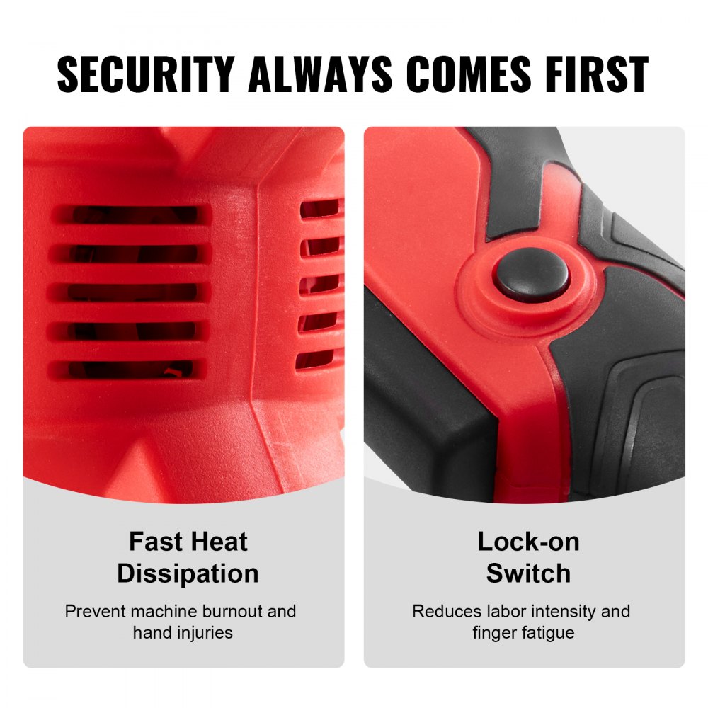 Sterowanie jednym przyciskiem: Dzięki przyciskowi blokady elektryczny wibrator do betonu można obsługiwać bez konieczności ciągłego naciskania spustu. Pozwala to na komfortową pracę przez dłuższy czas, co przekłada się na wyższą wydajność i mniejsze obciążenie ciała.