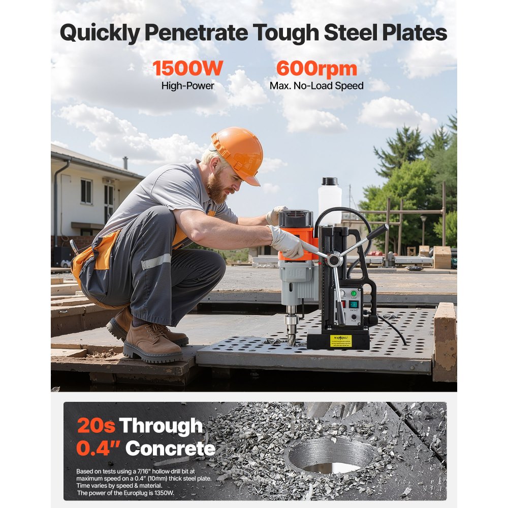 Wydajna: Zasilana silnikiem o mocy 1500 W, ta wiertarka magnetyczna zapewnia wysoką wydajność podczas remontów domów, budowy urządzeń, konstrukcji stalowych, budowy statków, projektów mostowych i kolejowych, energetyki wiatrowej, elektrowni i wielu innych zadań – gotowa do każdego zadania, w każdym miejscu