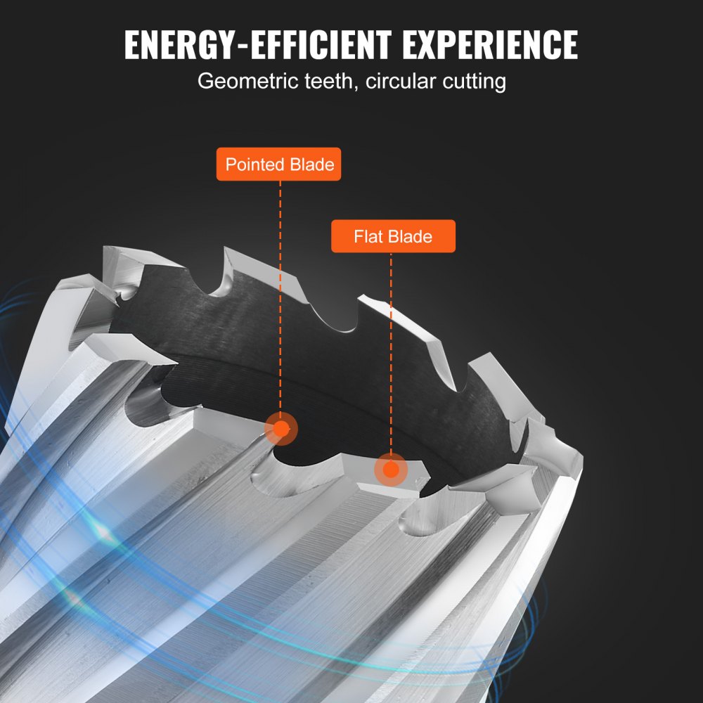 Frez o dużej wydajności: Wydajny system odprowadzania wiórów zapewnia płynne usuwanie wiórów, zapobiega zatykaniu i zwiększa wydajność. Nasze wiertła pierścieniowe oferują wysokie prędkości wiercenia, co zapewnia płynną pracę.