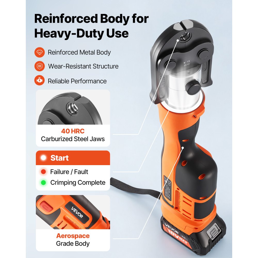 Zestaw zaciskarek akumulatorowych VEVOR 18 V, zaciskarka 32 kN z 3 szczękami zaciskającymi M15, M22, M28 i głowicą obrotową 180°, elektryczna zaciskarka z akumulatorami 4,0 Ah do rur ze stali nierdzewnej do 54 mm, 40 HRC dla wysokiej wydajności - Narzędzia elektryczne | Galaxy Sklep