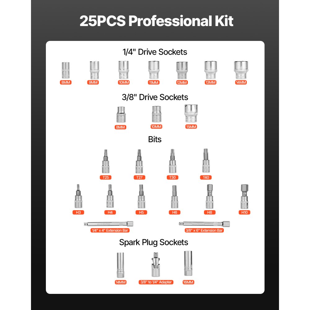 Klucz dynamometryczny VEVOR Click, napęd 3/8 cala, 5-60 Nm, dwukierunkowy klucz dynamometryczny z nasadkami, przedłużką i wiertłem, 72 zęby ±3%, stal stopowa o wysokiej precyzji do napraw samochodowych - Narzędzia ręczne | Galaxy Sklep