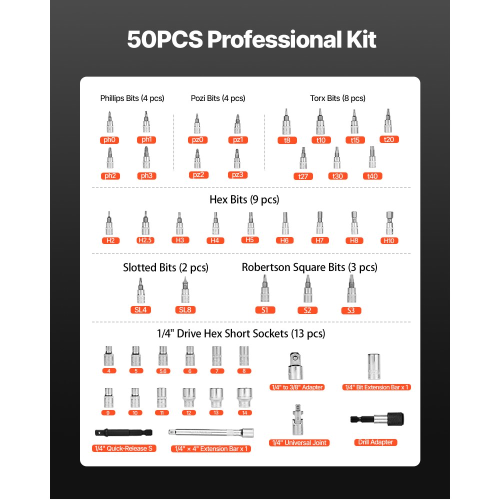 Klucz dynamometryczny VEVOR Click z napędem 1/4 cala 2,3-27,1 Nm, dwukierunkowy klucz dynamometryczny z przedłużkami i wiertłem, 72 zęby ±3%, wysoka precyzja, do napraw samochodowych, pomarańczowy - Narzędzia ręczne | Galaxy Sklep