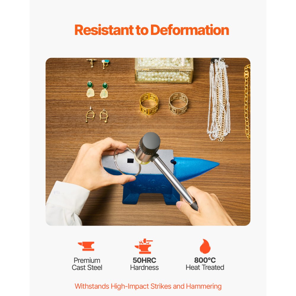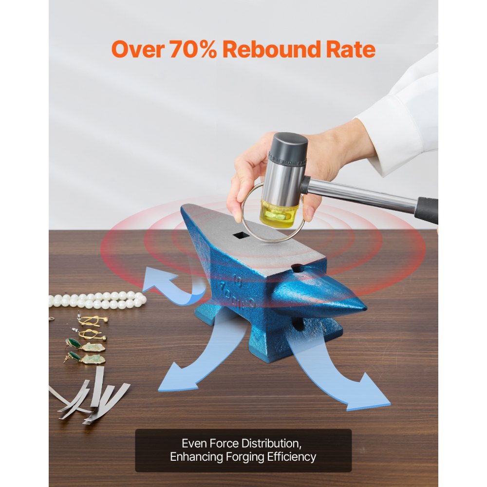 Duży obszar roboczy: Ta metalowa kuźnia kowadłowa o wadze 10 kg (22 funtów) charakteryzuje się wygodną i szeroką powierzchnią roboczą. Szeroka i płaska powierzchnia robocza zapewniają komfort użytkowania i wytrzymują długotrwałe bicie.
