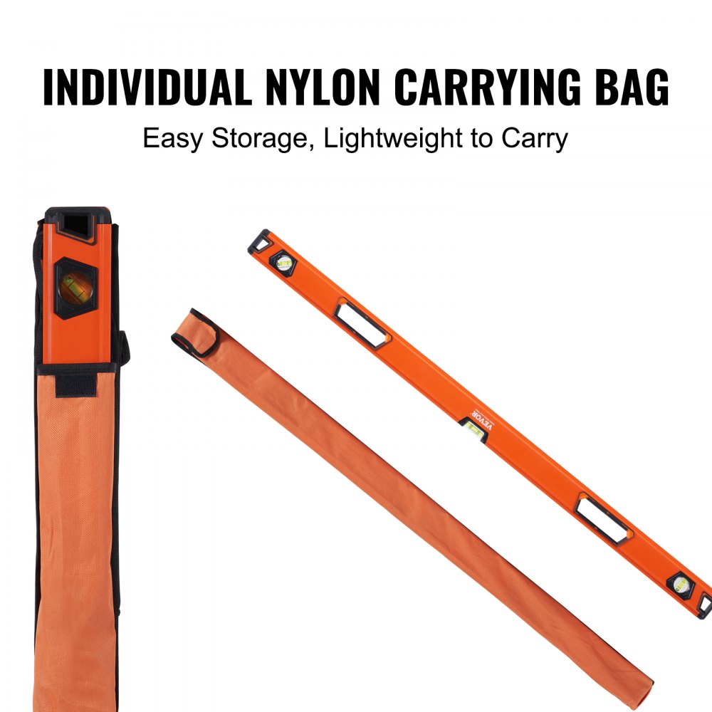 Poziomica magnetyczna aluminiowa VEVOR 1222 mm 3 libelki Kąt 45 stopni, pozioma i pionowa 0,5 mm/m W zestawie nylonowa torba do przechowywania Profesjonalna poziomica - Narzędzia ręczne | Galaxy Sklep