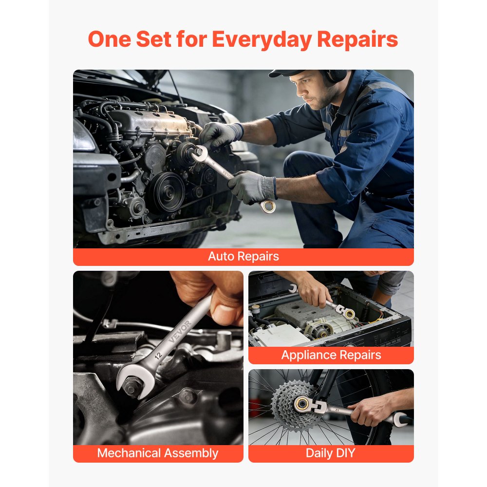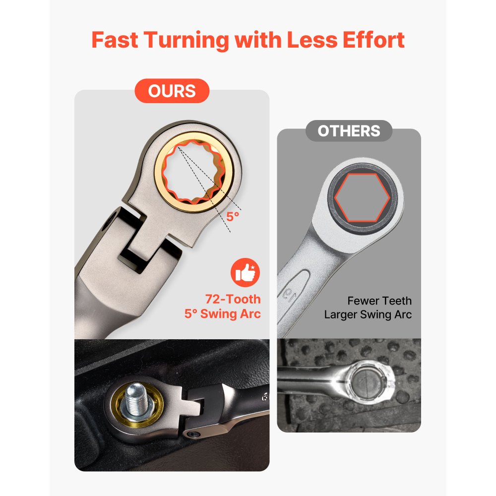 Zestaw kluczy grzechotkowych VEVOR z elastyczną głowicą, 12 elementów, metrycznych 8-19 mm, 72 zęby, klucze oczkowe z grzechotką wykonane ze stali chromowo-wanadowej z torbą do przechowywania, klucze płaskie do napraw domowych i konserwacji pojazdów - Narzędzia ręczne | Galaxy Sklep