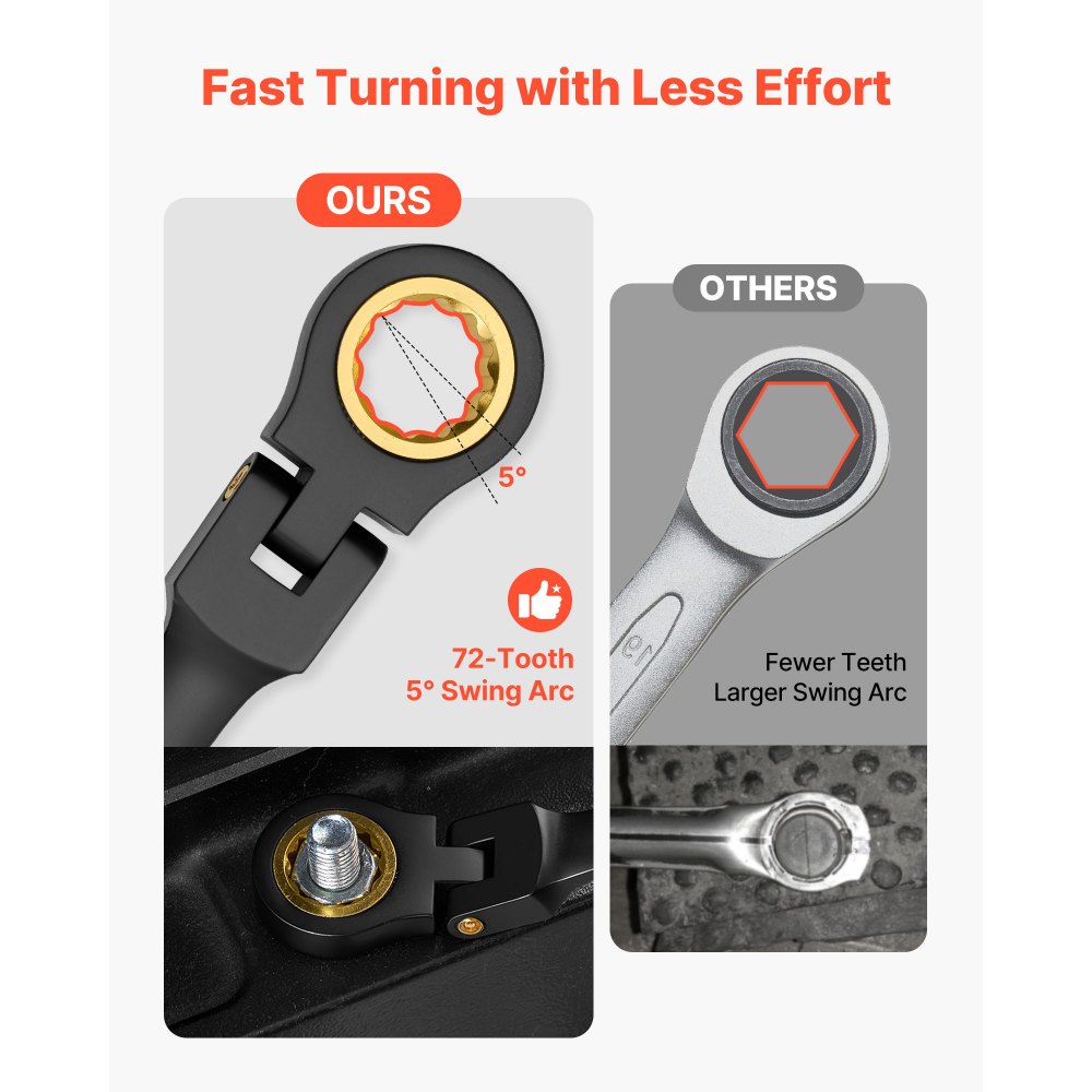 Zestaw kluczy grzechotkowych VEVOR z elastyczną głowicą, 24 elementy, metryczny SAE 72 zęby, zestaw kluczy oczkowych z grzechotką ze stali chromowo-wanadowej z etui do przechowywania, klucze płaskie do napraw domowych i samochodowych - Narzędzia ręczne | Galaxy Sklep