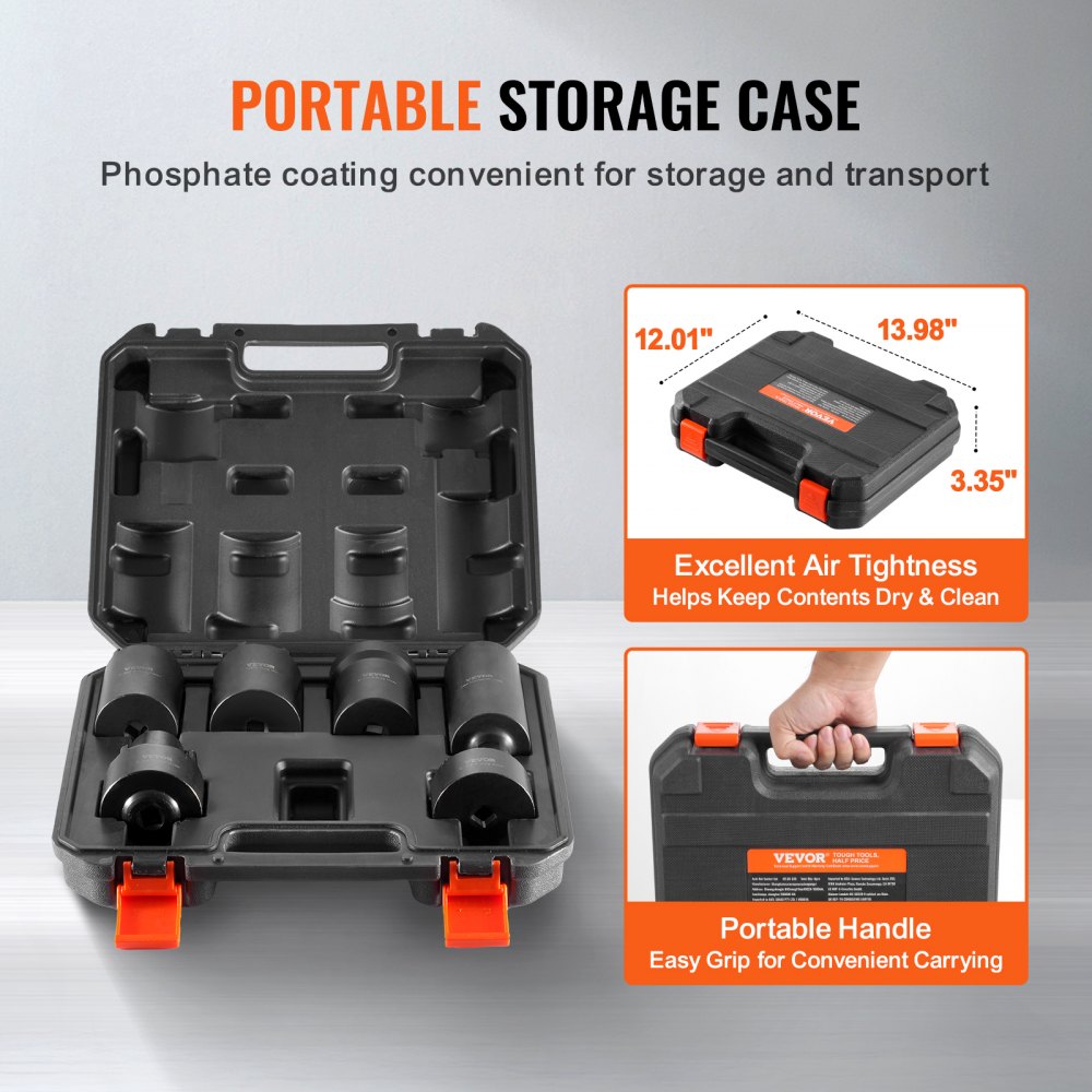 Zestaw nasadek do nakrętki wrzeciona VEVOR 12,7 mm, 6-częściowy zestaw nasadek do nakrętki piasty osi z walizką do przechowywania, zestaw nasadek do zdejmowania nakrętki wrzeciona osi, nakrętka wrzeciona - Narzędzia ręczne | Galaxy Sklep