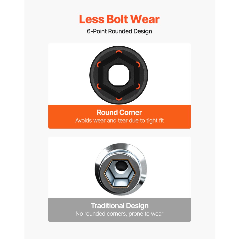 Doskonała wydajność: Niezależnie od tego, czy wkręcasz je kluczem udarowym, czy ręcznie, te wysokiej jakości nasadki chromowo-wanadowe zapewniają doskonałą wydajność. Zestaw nasadek udarowych charakteryzuje się 6-kątną konstrukcją o wysokim momencie obrotowym, która chwyta i zaciska mocniejsze, płaskie boki nakrętki lub łba śruby, a nie słabsze narożniki.