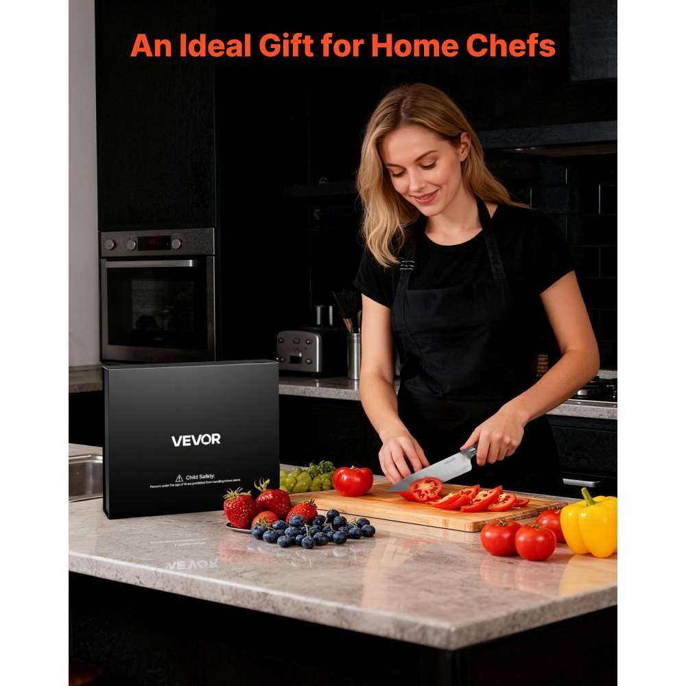 Zestaw noży kuchennych VEVOR, 5 elementów, noże wykonane z wysokowęglowej stali nierdzewnej, trwałe i odporne na rdzę, sztućce kuchenne z ergonomicznym i odpornym na pękanie uchwytem umożliwiającym precyzyjne krojenie