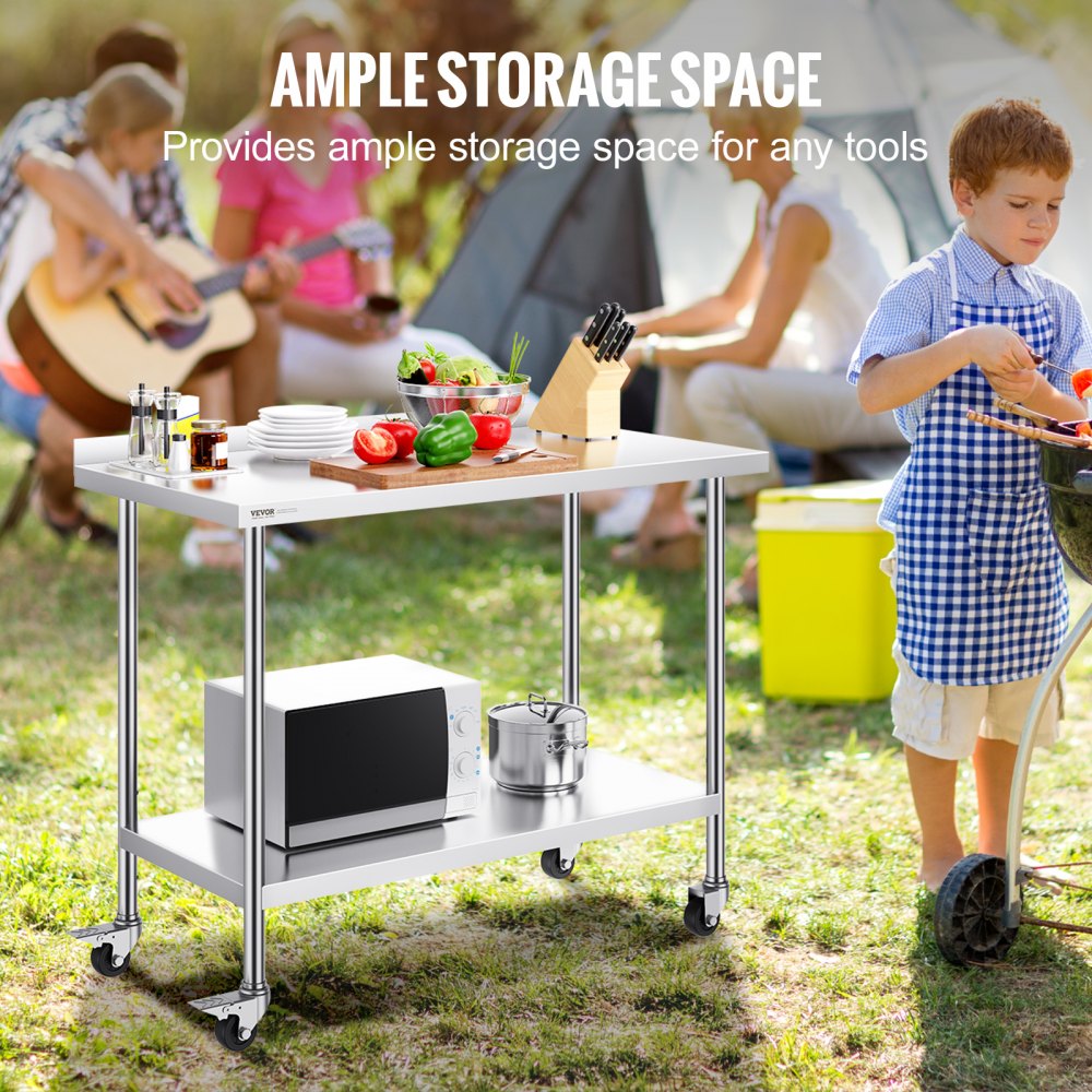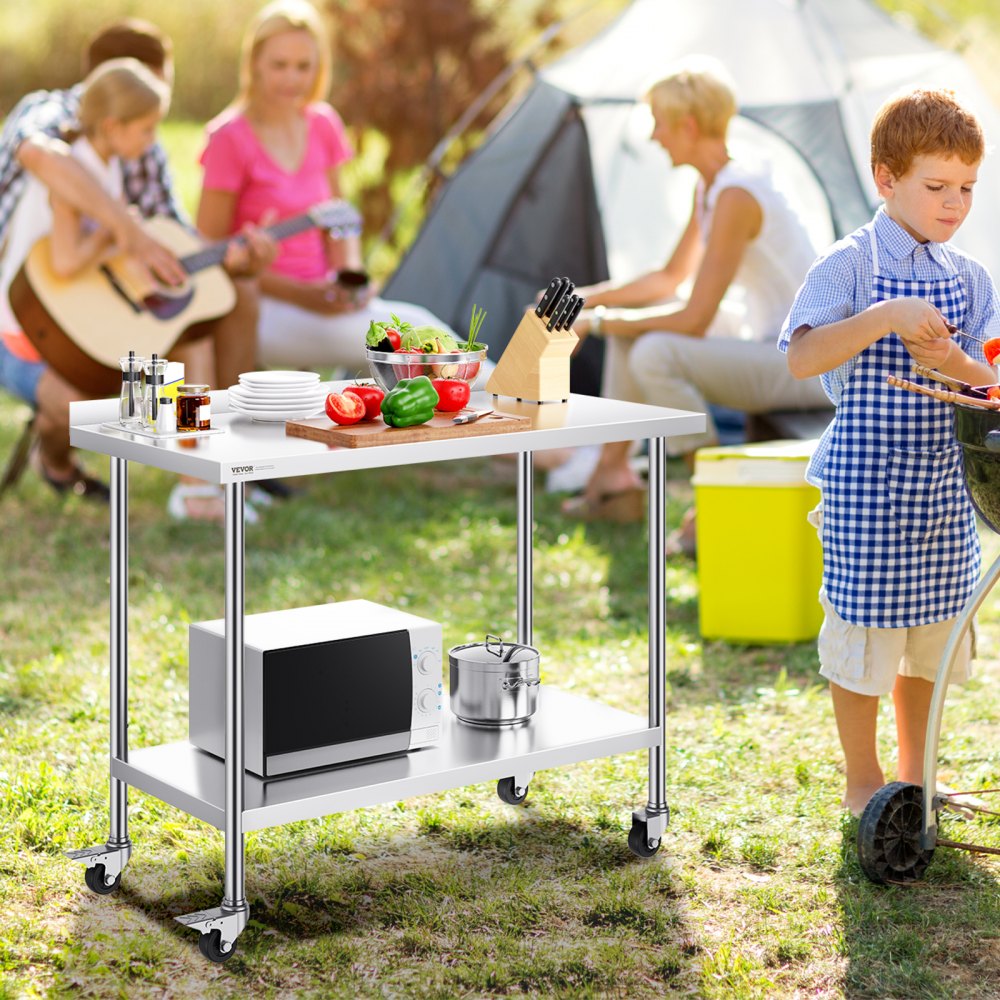 Stół roboczy ze stali nierdzewnej, komercyjny stół roboczy do przygotowywania żywności z kółkami, stół roboczy do przygotowywania potraw, z regulowaną wysokością do restauracji, hoteli itp. 610 x 1219 x 1005,6 mm - Nowe produkty | Galaxy Sklep