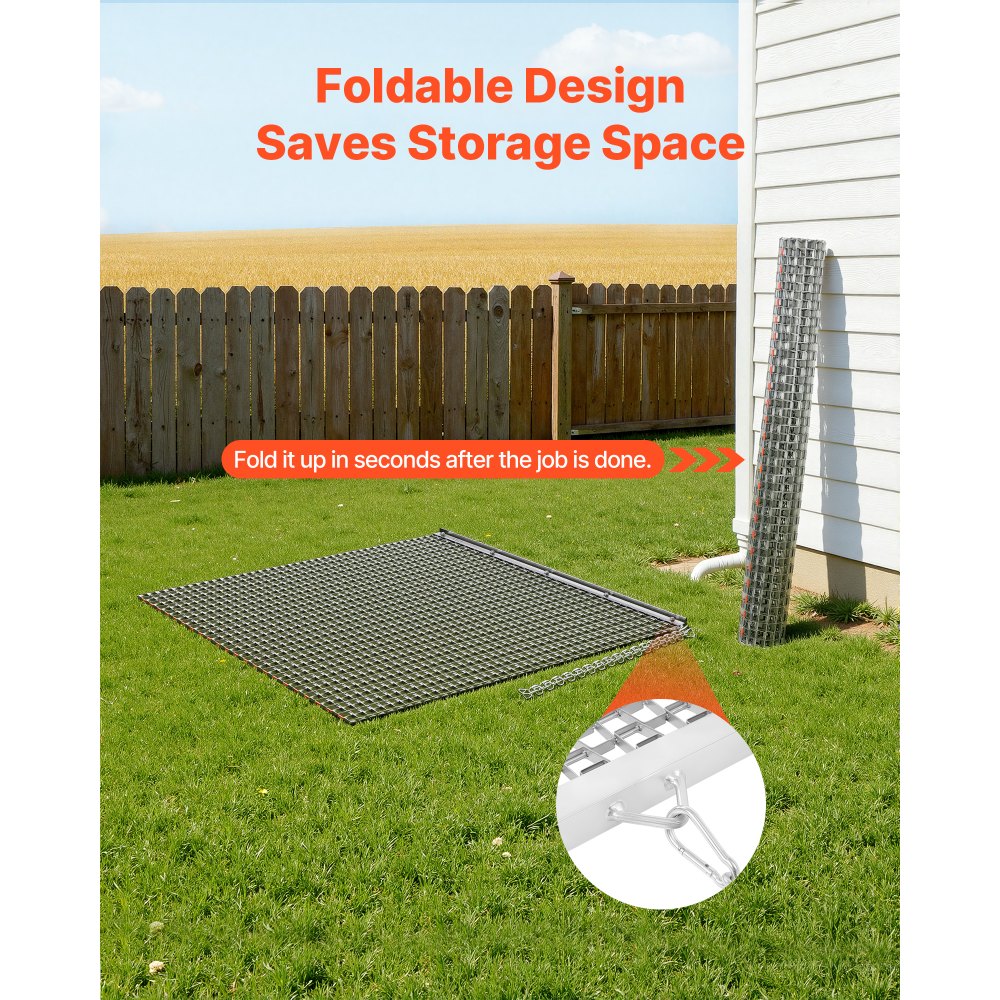 Brona wleczona VEVOR, 122x122 cm, brona łąkowa, brona polowa ze stali ocynkowanej z łańcuchem wleczonym, mocowanie do quadów, UTV i traktorów do wyrównywania dróg żwirowych, ścieżek i pól - Ogród i trawnik | Galaxy Sklep