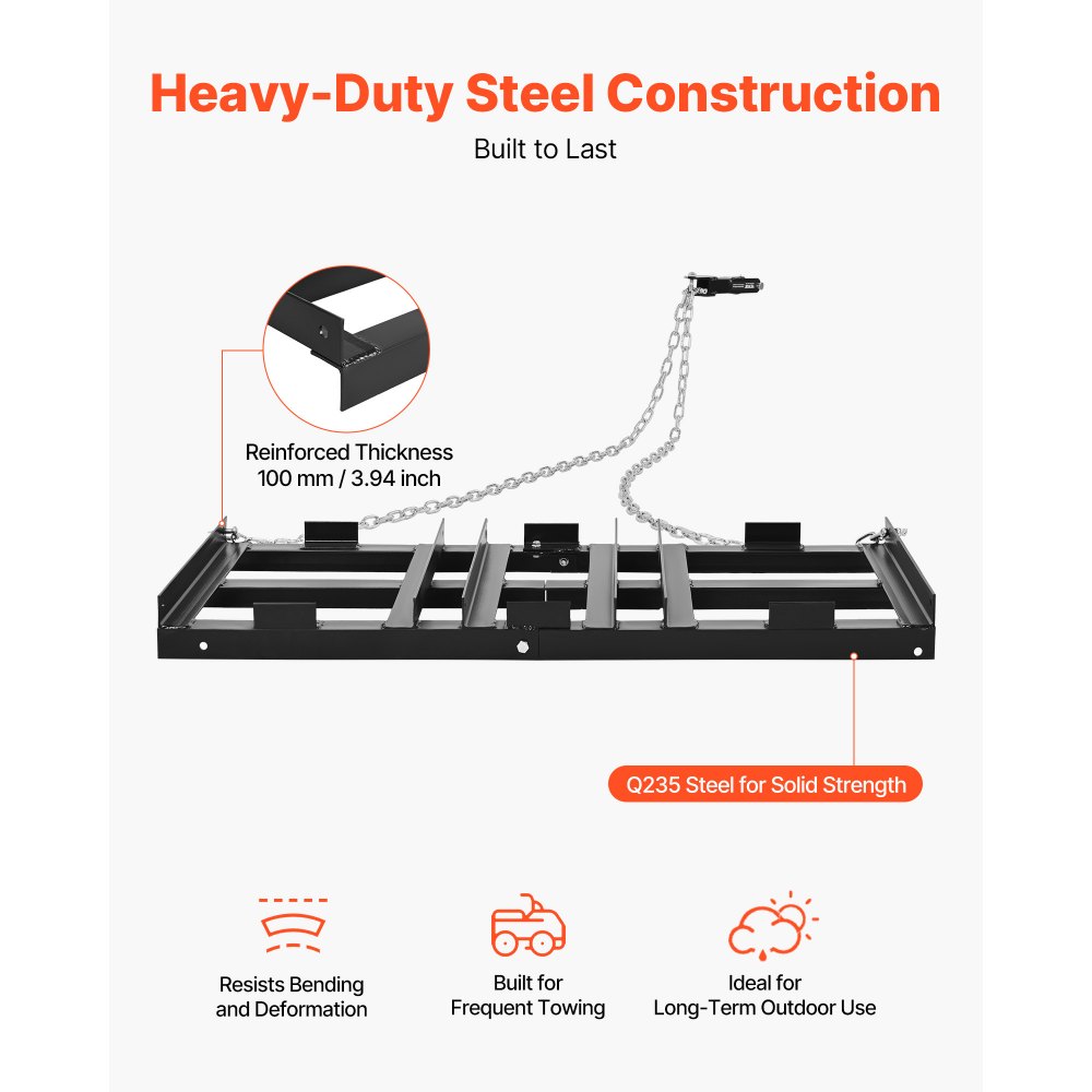 Brona wleczona VEVOR 122x50 cm, brona łąkowa, brona łąkowa z łańcuchem 183 cm, wysokowydajna brona wyrównująca, ocynkowana stalowa brona polowa do podjazdów żwirowych, odpowiednia do quadów, UTV i traktorów - Ogród i trawnik | Galaxy Sklep