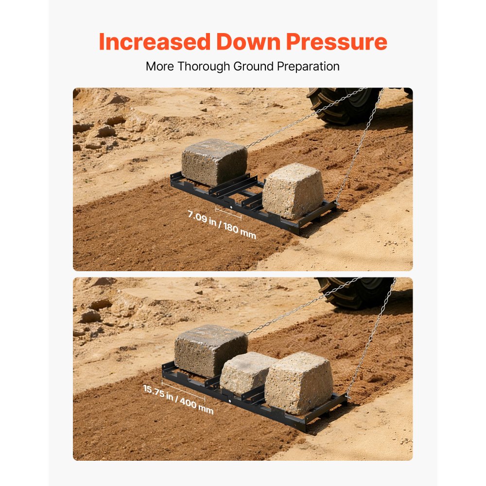 Wszechstronne zastosowanie: Te dołączane grabie wyrównujące są przeznaczone do stosowania z pojazdami ATV, UTV, traktorkami do koszenia trawy i traktorami kompaktowymi, umożliwiając całoroczne prace wyrównujące i konserwację gleby przy użyciu tylko jednego urządzenia.