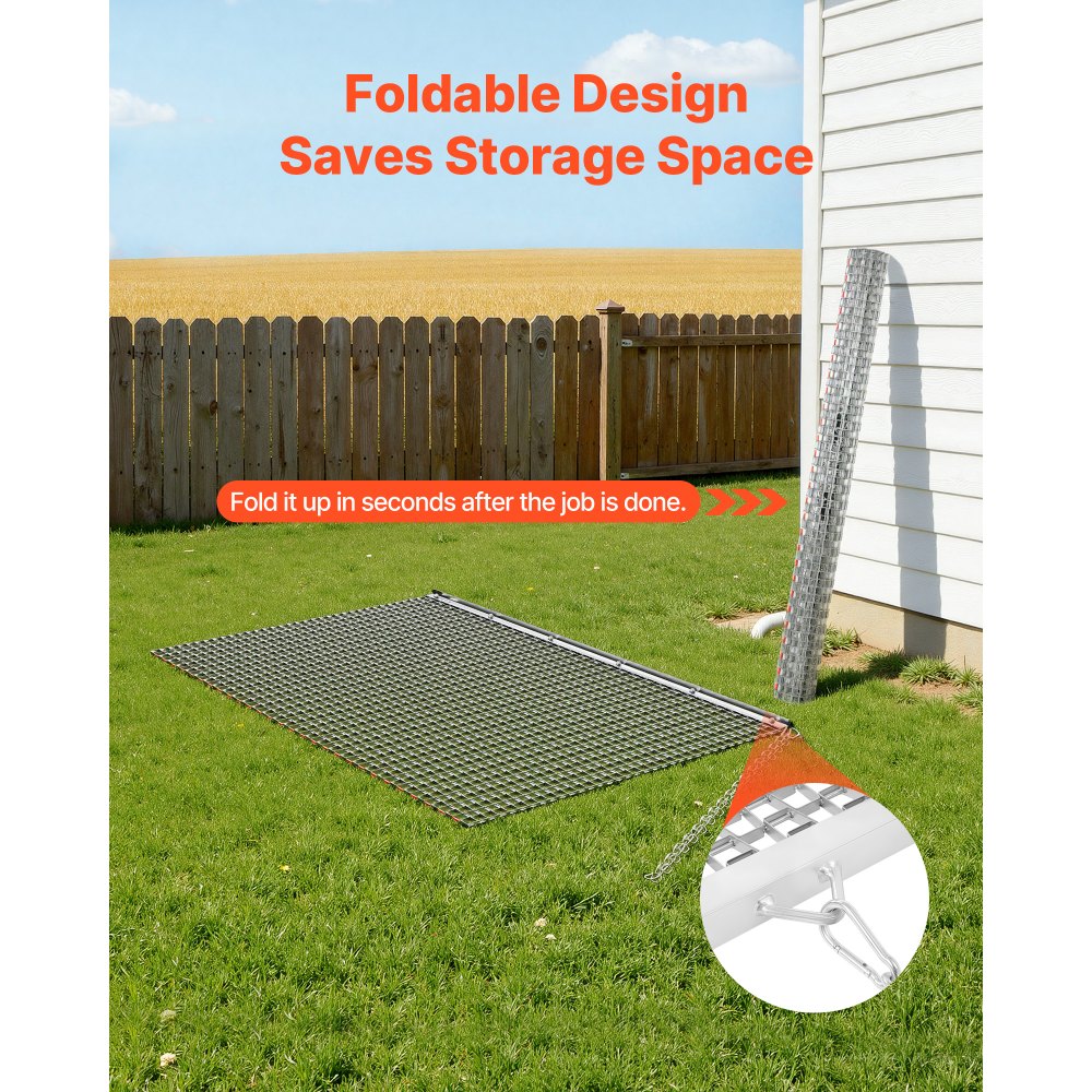 Brona wleczona VEVOR 1525x914 mm, brona łąkowa, brona polowa ze stali ocynkowanej z łańcuchem wleczonym, mocowanie do quadów, UTV i traktorów do wyrównywania dróg żwirowych, torów i pól - Ogród i trawnik | Galaxy Sklep