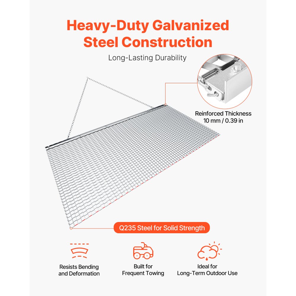 Brona wleczona VEVOR 1830x914 mm, brona łąkowa, brona polowa ze stali ocynkowanej z łańcuchem wleczonym, mocowanie do quadów, UTV i traktorów do wyrównywania dróg żwirowych, torów i pól