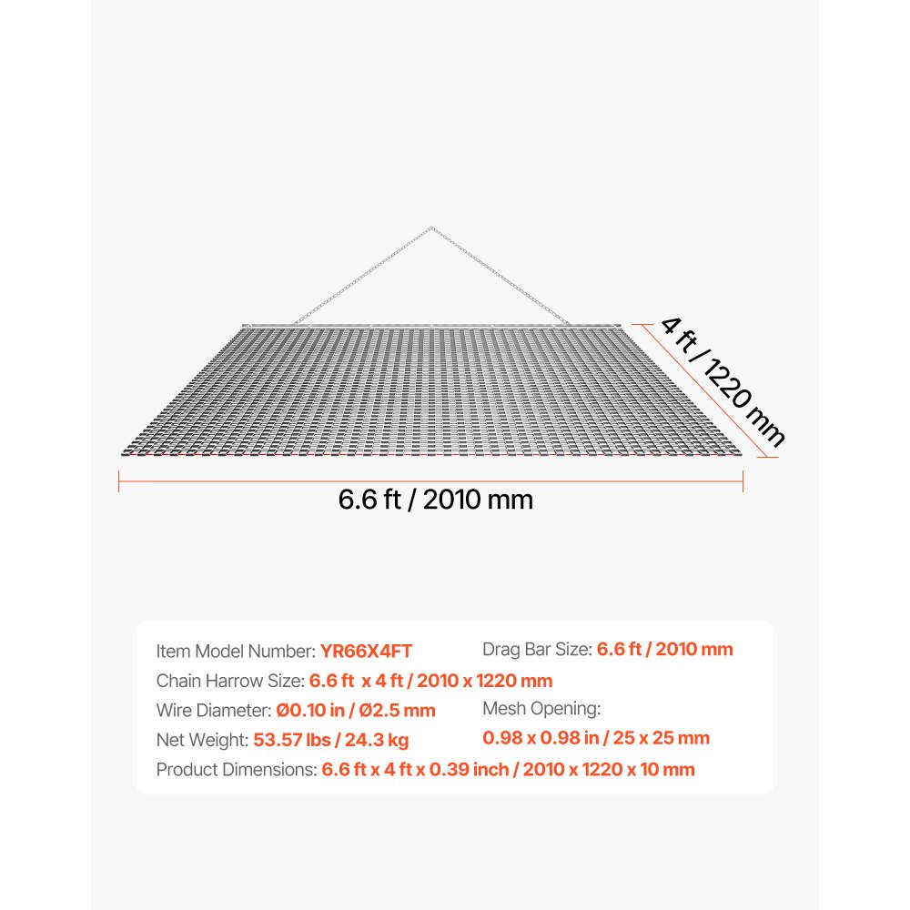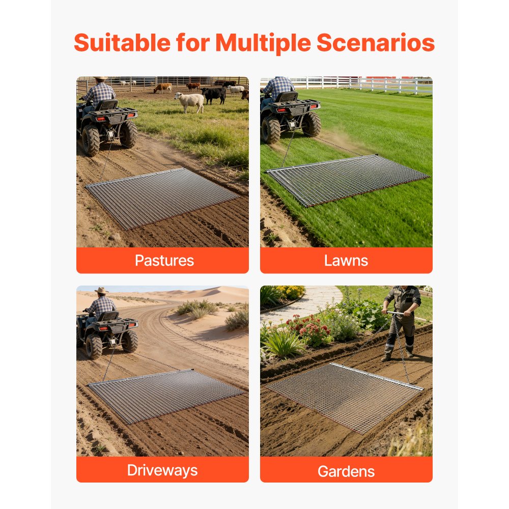 Brona wleczona VEVOR, 201x122 cm, brona łąkowa, brona polowa ze stali ocynkowanej z łańcuchem wleczonym, mocowanie do quadów, UTV i traktorów do wyrównywania dróg żwirowych, ścieżek i pól - Ogród i trawnik | Galaxy Sklep