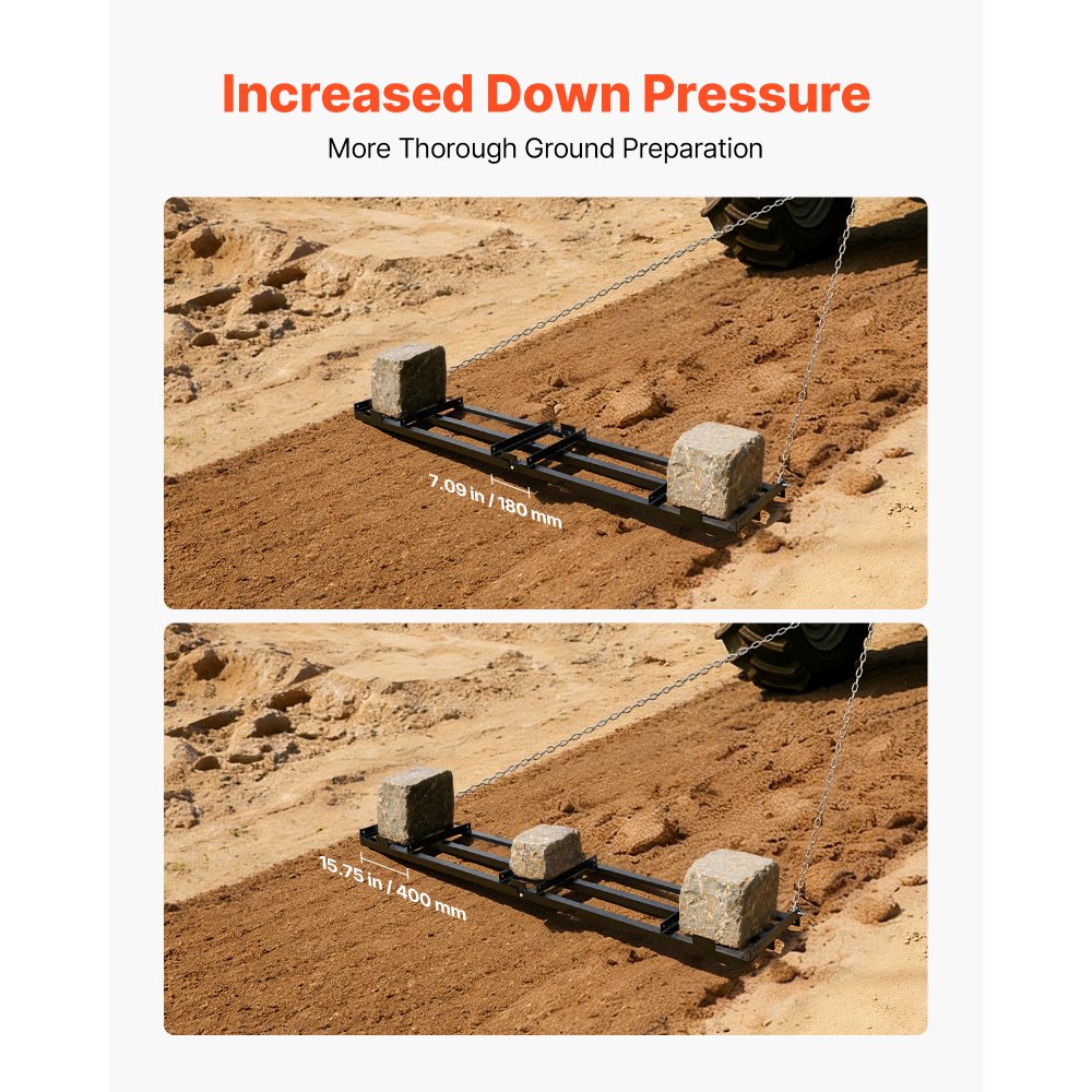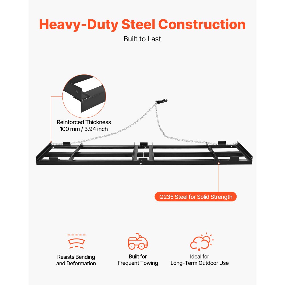 Brona wleczona VEVOR 243,5 x 50 cm, brona łąkowa, brona łąkowa z łańcuchem 183 cm, wysokowydajna brona wyrównująca, ocynkowana stalowa brona polowa do podjazdów żwirowych, odpowiednia do quadów, UTV i traktorów - Ogród i trawnik | Galaxy Sklep