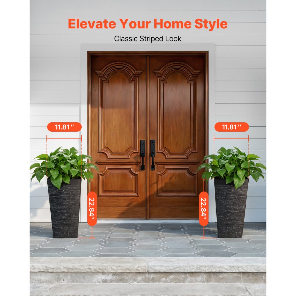 Czysty i nowoczesny design: Dzięki eleganckim, zwężanym liniom i ponadczasowemu wzorowi w paski, te wysokie donice ogrodowe idealnie wpasują się w każde otoczenie – od nowoczesnego po tradycyjne. Niezależnie od tego, czy wewnątrz, czy na zewnątrz, dodadzą Twojemu domowi elegancji.