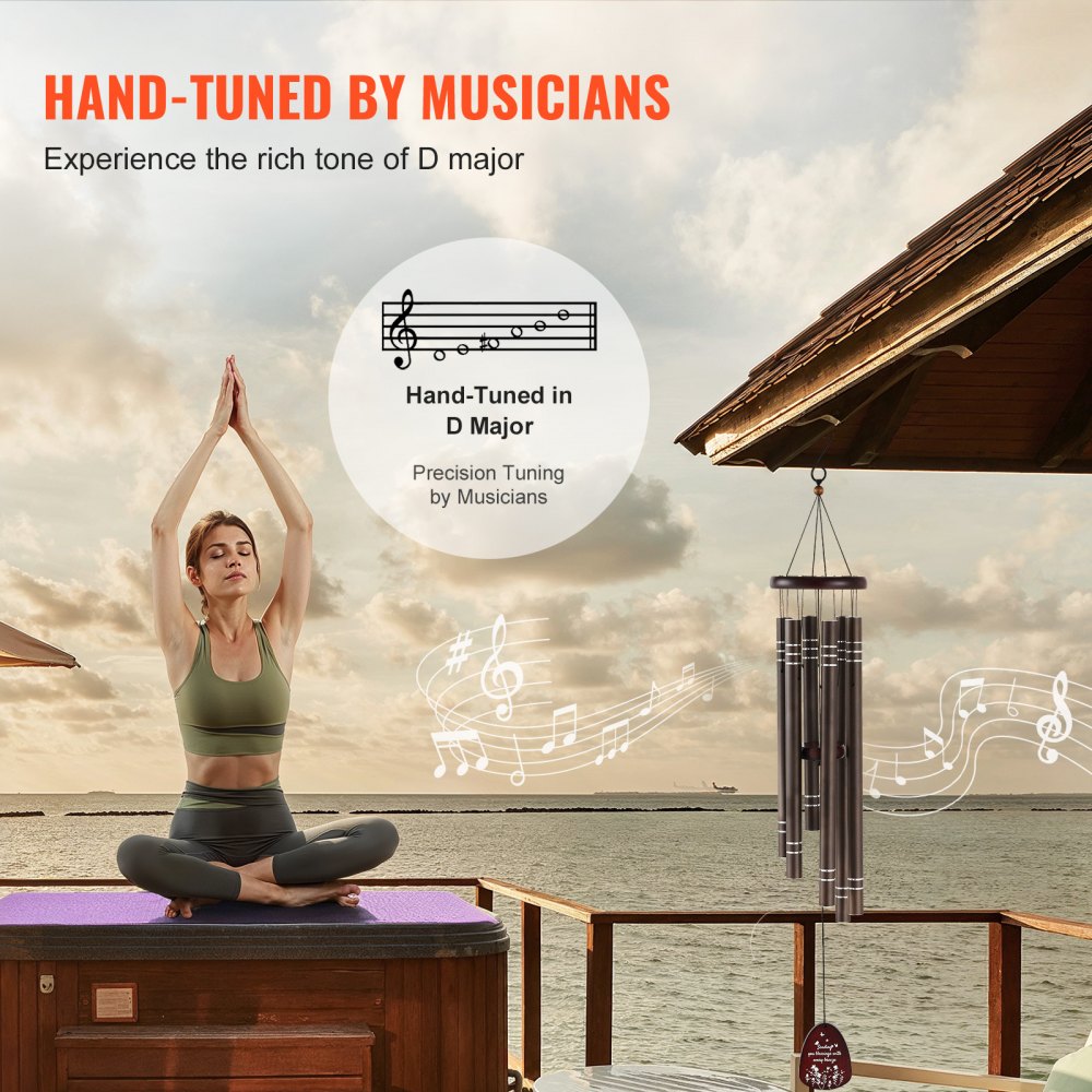 Dzwonek wietrzny VEVOR, 42-calowy, o głębokim tonie, z 6 rurkami, wyjątkowy, duży, pamiątkowy dzwonek wietrzny z okazji rocznicy, doskonała dekoracja na patio, werandę, do ogrodu i na podwórko, ciemnobrązowy