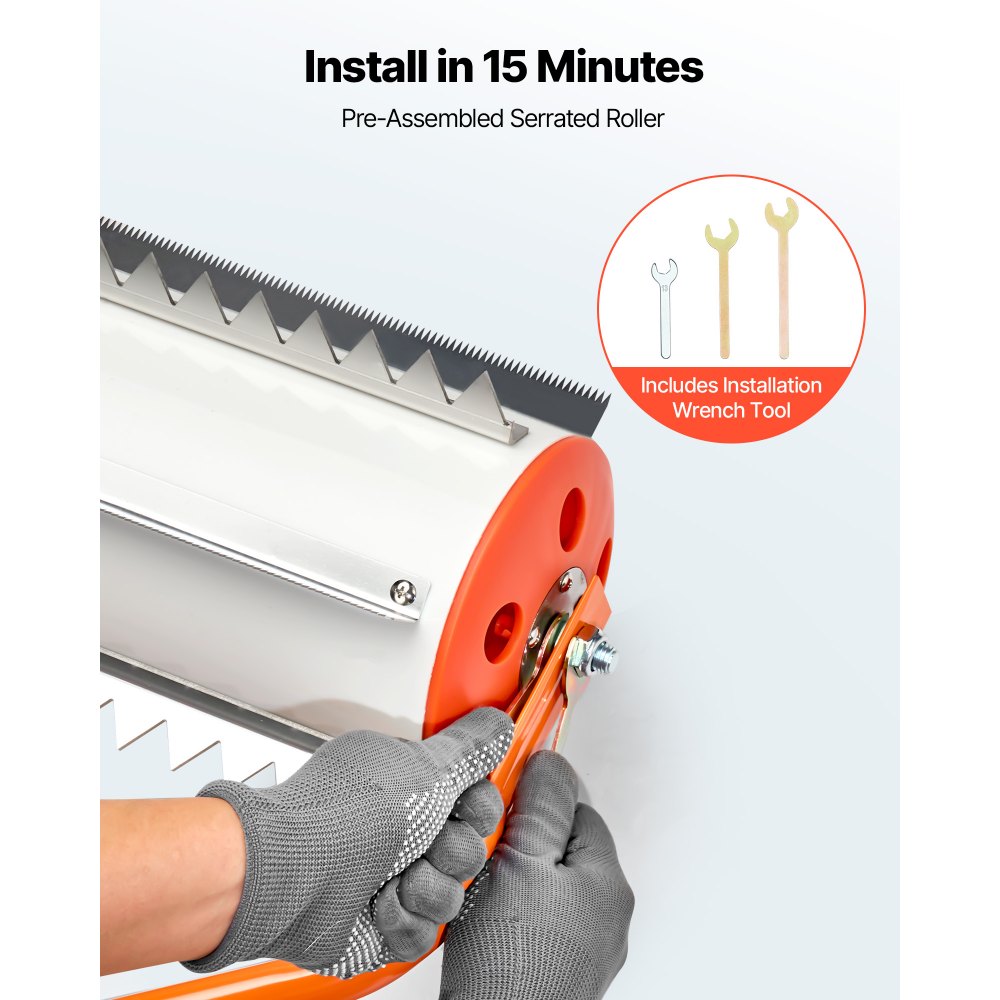 Szybki montaż: Ząbkowane zęby naszej rolki do usuwania wodorostów są fabrycznie zmontowane, co przyspiesza instalację. W zestawie znajdują się klucze montażowe, a montaż trwa około 15 minut, zgodnie z instrukcją.