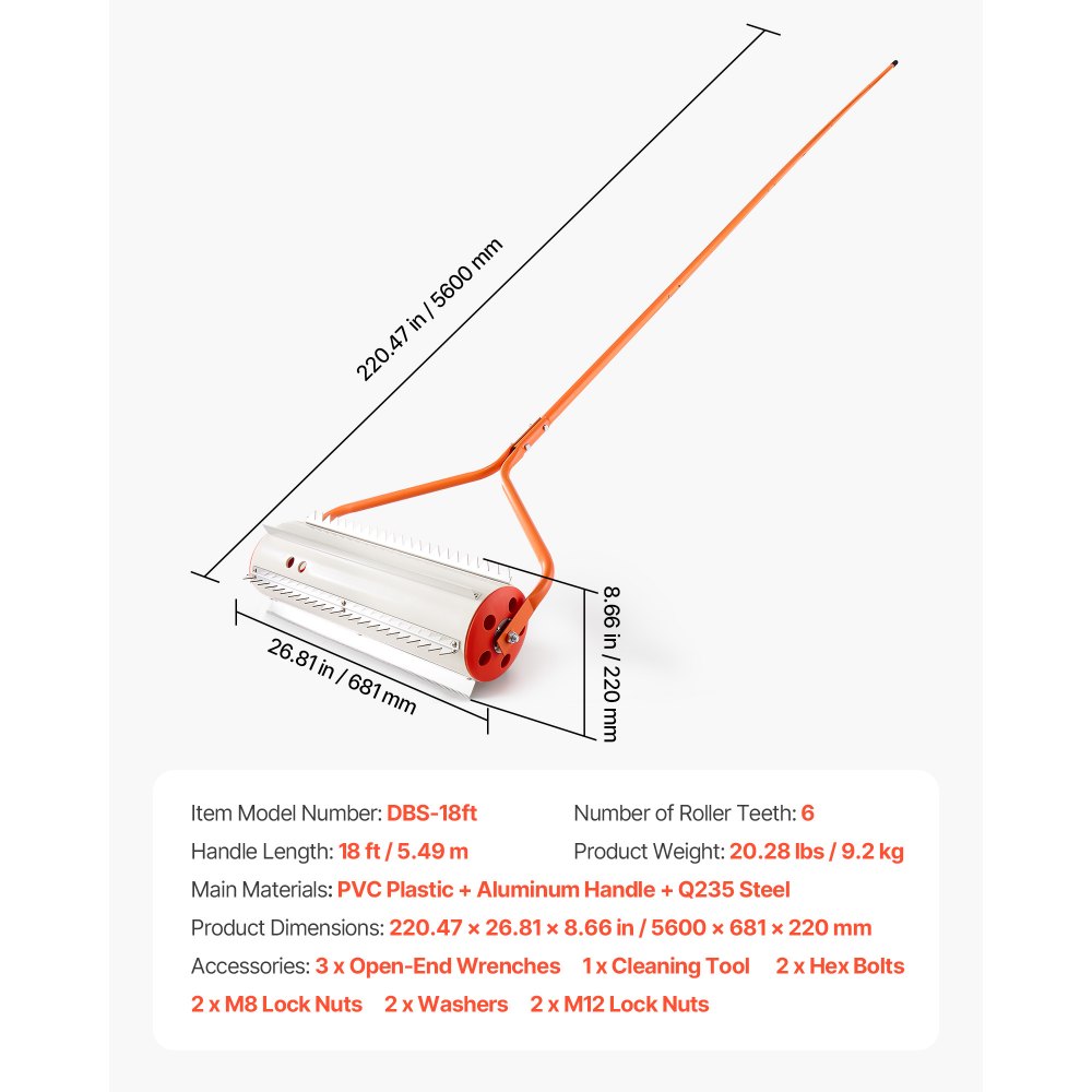 Grabie do oczek wodnych VEVOR 5,49 m, wałek do usuwania chwastów z jezior i oczek wodnych, rozdrabniacz osadu, korzeni i osadów, 6 wstępnie zmontowanych ostrzy ze stali nierdzewnej, 5 aluminiowych uchwytów - Ogród i trawnik | Galaxy Sklep