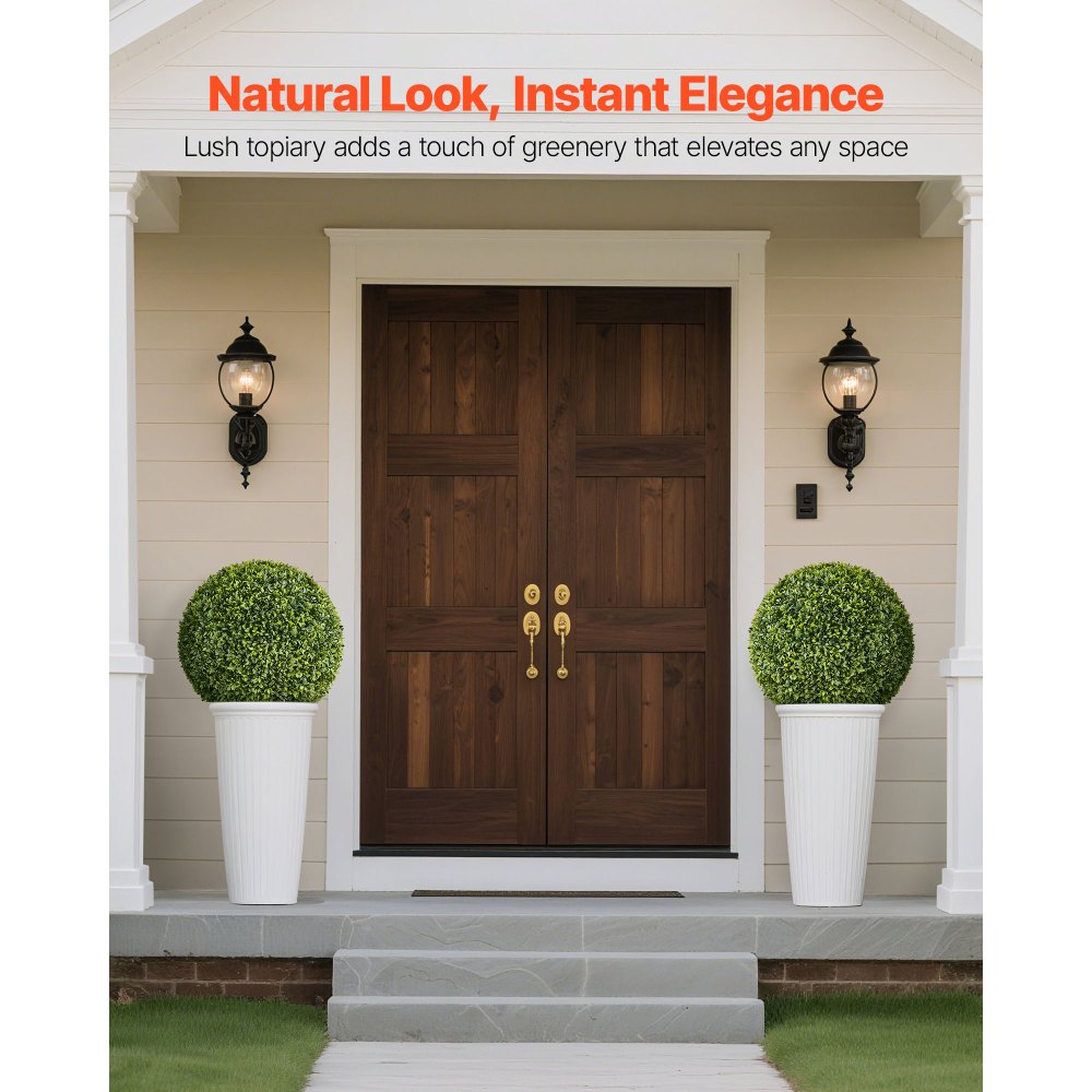 Realistyczny i naturalny wygląd: Te sztuczne drzewka topiary o wysokości 584 mm charakteryzują się bujnymi, gęstymi liśćmi z polietylenu o naturalnych odcieniach i realistycznych fakturach. Wzmocniony pień i starannie ukształtowane liście zapewniają elegancki wygląd przez cały rok.