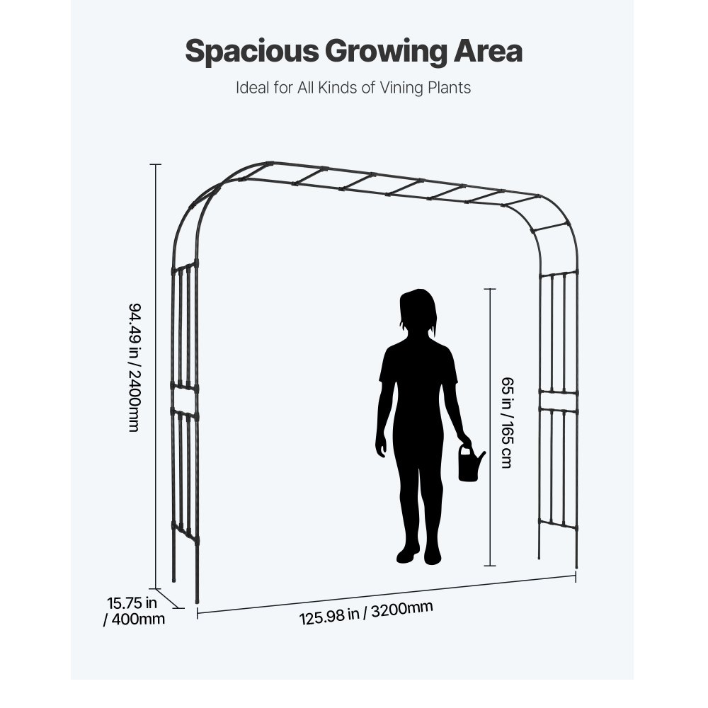 Łuk ogrodowy VEVOR, 2400x3200x400 mm, łuk różany, kratka, pomoc do wspinaczki, łuk metalowy, stabilna kratka różana do użytku na zewnątrz z palikami, idealna do ogrodu, trawnika, dekoracji weselnej
