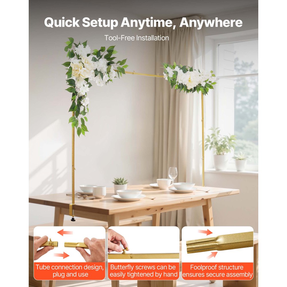 Łuk stołowy VEVOR, regulowany od 711,2 do 2489,2 mm długości i 330,2 do 1066,8 mm wysokości, drążek do dekoracji stołu z akcesoriami kwiatowymi, złota rama na balony do dekoracji ślubnych, urodzinowych i świątecznych - Ogród i trawnik | Galaxy Sklep