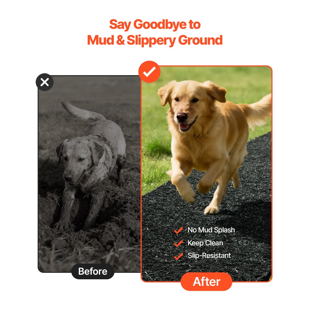 Łatwe do przycinania i układania: Tę gumową matę ściółkową można przyciąć do dowolnego kształtu i powierzchni za pomocą nożyc ogrodowych. Wystarczy położyć ją płasko na ziemi i zabezpieczyć palikami w kształcie litery U. Idealna do ogrodów, warzywników, sadów i terenów zielonych – oszczędzając czas i wysiłek.