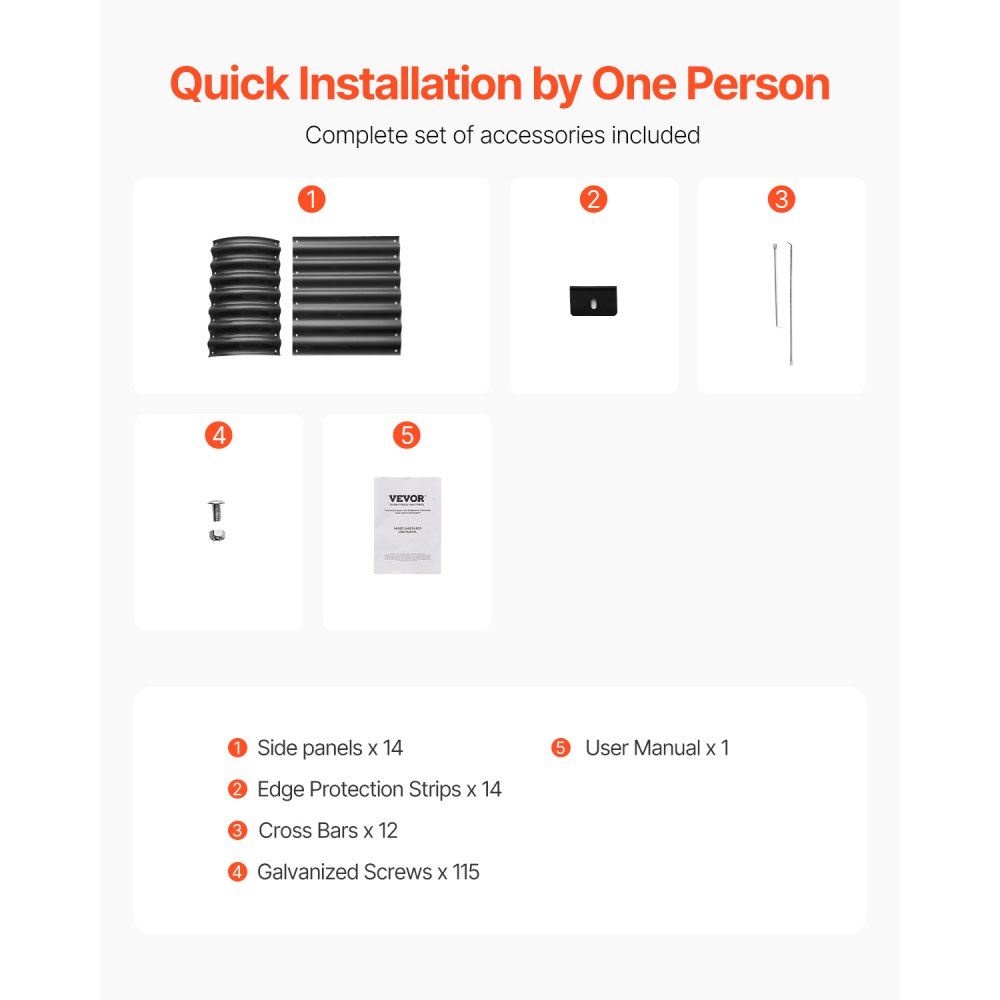 Co otrzymasz: Nasze podwyższone łóżko obejmuje 14 paneli bocznych, 12 poprzeczek, 14 listew zabezpieczających krawędzie, 115 ocynkowanych śrub i instrukcję obsługi.