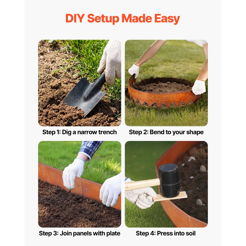 Obrzeże trawnikowe VEVOR, 6 szt., 1016 x 152 mm, obrzeże rabatowe ze stali corten z 8 płytkami łączącymi, elastyczna obwódka rabat, arkusze trawnikowe, metalowa obrzeże do koszenia rabat kwiatowych, ścieżki ogrodowe - Ogród i trawnik | Galaxy Sklep