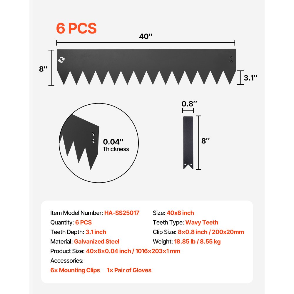 Obrzeże trawnikowe VEVOR, 6 szt., 1016 x 203 mm, obrzeże rabatowe z 6 klipsami mocującymi, elastyczne arkusze trawnikowe ze stali ocynkowanej, obrzeże do koszenia, palisadowa obwódka rabat kwiatowych i ścieżek ogrodowych, czarne