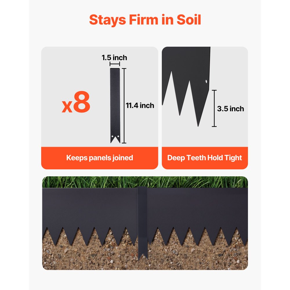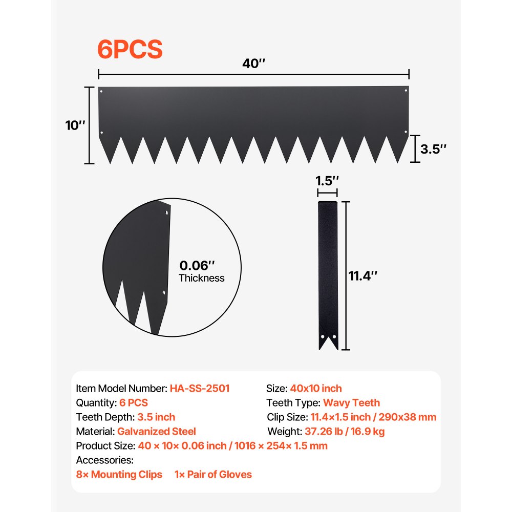 Obrzeże trawnikowe VEVOR, 6 szt., 1016 x 254 mm, ocynkowane, stalowe, w tym 8 klipsów mocujących, obrzeże rabatowe, arkusze trawnikowe, metalowa palisada do koszenia klombów i ścieżek ogrodowych, czarne - Ogród i trawnik | Galaxy Sklep
