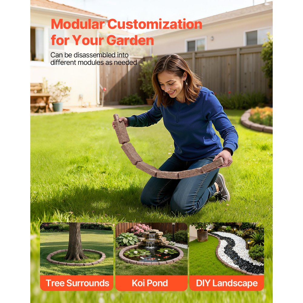 Obrzeże trawnikowe VEVOR o wyglądzie kamienia, zestaw 4 szt., 1180 x 95 x 57 mm, obrzeże rabatowe, elastyczne obrzeże ogrodowe w rozmiarze cegły z kolcami kotwiącymi, odporne na światło obrzeże rabatowe do podjazdów i ścieżek, brązowe - Ogród i trawnik | Galaxy Sklep