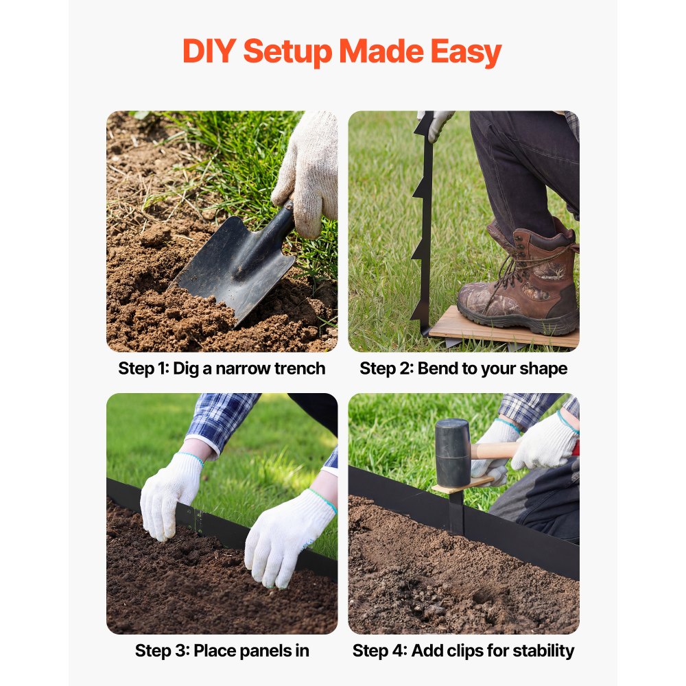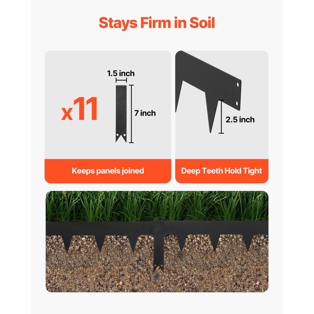Obrzeże trawnikowe VEVOR, opakowanie 10 szt., 1016 x 114,3 mm, obrzeże rabatowe z 11 klipsami mocującymi, ocynkowana stalowa obwódka rabat, arkusze trawnikowe, obrzeże do koszenia, metalowa palisada do rabat kwiatowych i ścieżek ogrodowych, kolor czarny