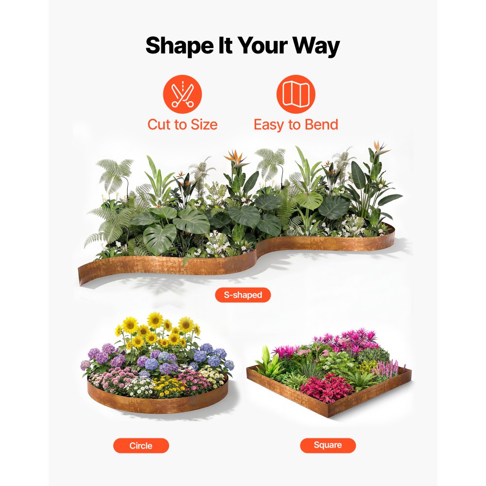 Szybki i łatwy montaż: Tę obrzeże ogrodowe można szybko i łatwo zamontować, przycinając je na wymiar, wbijając w ziemię i delikatnie wbijając młotkiem. Prosty montaż oszczędza Twoje ręce i pozwala na bezproblemowe projektowanie obrzeży ogrodowych.