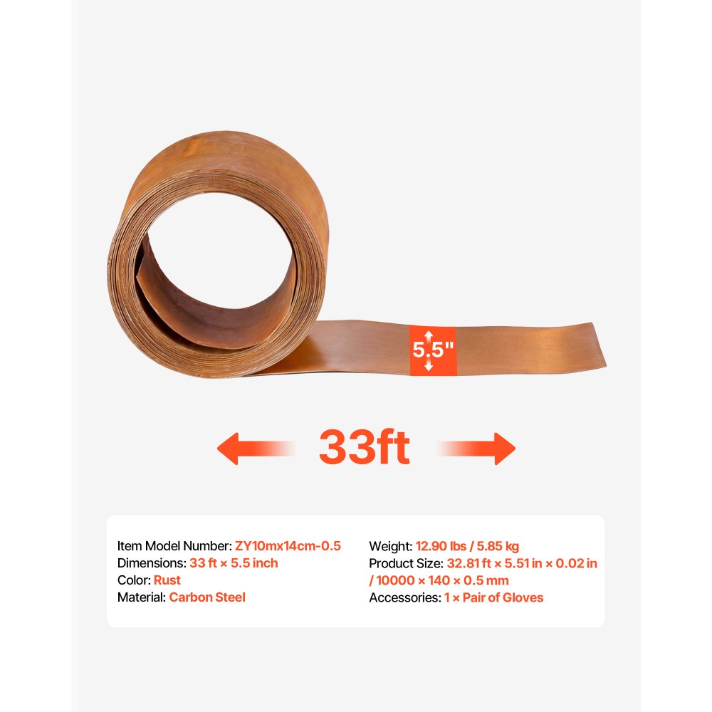 Obrzeże trawnikowe ze stali węglowej, 10 m x 14 cm, obrzeże rabatowe z rękawicami, metalowa palisada ogrodowa, obrzeże do koszenia, obrzeże rabat do projektowania ogrodów, obrzeże rabat kwiatowych i ścieżek ogrodowych