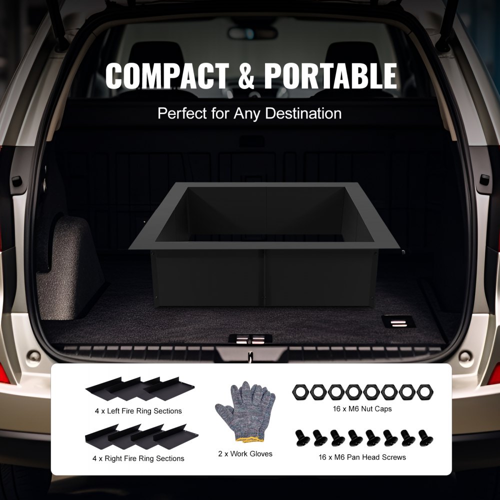 Pierścień do paleniska VEVOR, średnica zewnętrzna 36 x 36 cali / średnica wewnętrzna 30 x 30 cali, kwadratowy wkład do paleniska o wysokości 10 cali, wytrzymały wkład ze stali węglowej, pierścień do samodzielnego montażu na ziemi lub w ziemi, do biwakowania na świeżym powietrzu, ogniska